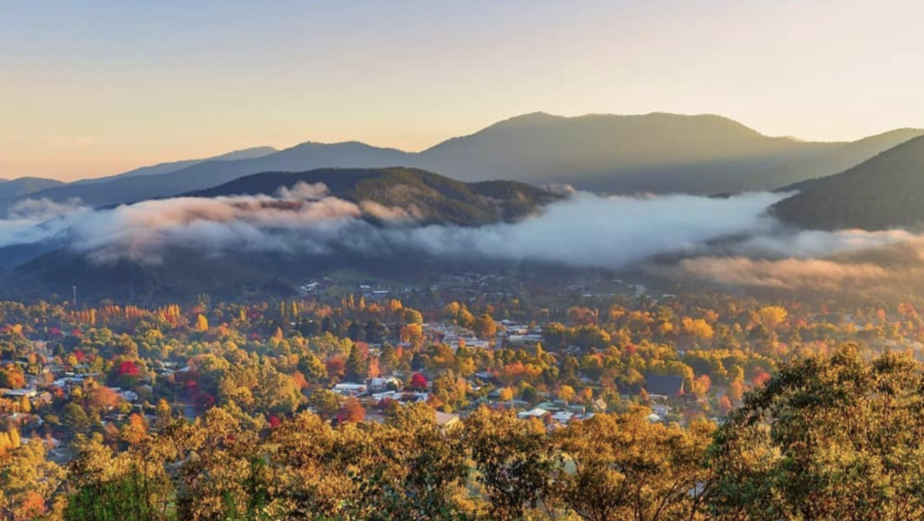 Its brilliant autumn colors, cozy cafés, welcoming main street, and breathtaking alpine scenery make it one of the most enchanting seasonal destinations in Victoria.
